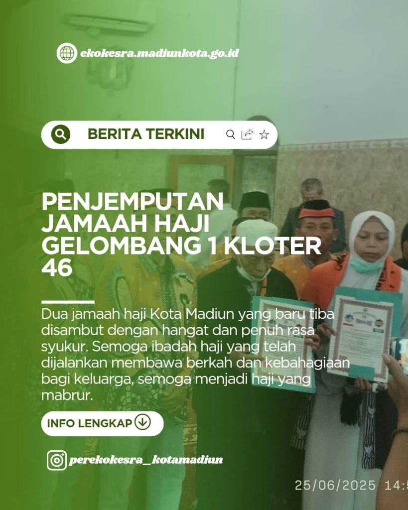 Alhamdulillah, Jema’ah Haji Gelombang I Kloter 46 asal Kota Madiun akhirnya kembali ke Tanah Air dan disambut meriah di Masjid Az‑Zahro. Sebelumnya, beberapa jamaah seperti Ibu Sumali dan anaknya Uus diberangkatkan lebih awal dari Kloter 46 ke Madinah melalui kebijakan syarikah, selepas keberangkatan dari Masjid Az‑Zahro tanggal 14 Mei lalu